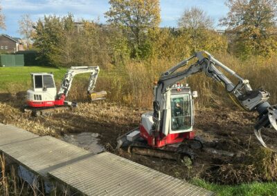 Sloten en vijvers zijn een essentieel onderdeel van het landschap, maar vragen om gerichte zorg. Wij verzorgen het baggeren, maaien van oevervegetatie en het verwijderen van begroeiing zoals kroos en riet. Zo blijven watergangen doorstroombaar en vijvers gezond en helder — goed voor mens, dier en milieu.